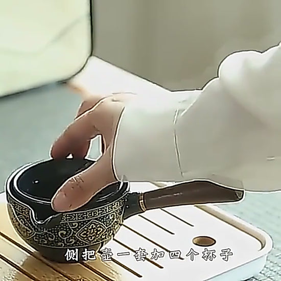 - Patented Distinctive Design: Officially licensed product. Tired of "just brewing and pouring" your lovely tea in the same way? Let's try this unique Chinese tea set and find out extra leisure from it. Unlike common teapot set in market, this rotatable teapot set defines a new look of kungfu tea, hold the handle and spin it, as a lazy tea set, you don't have to take the strainer out, enjoy a mixed spiritual sense of gongfu and tea and a special experience tea time with friends.